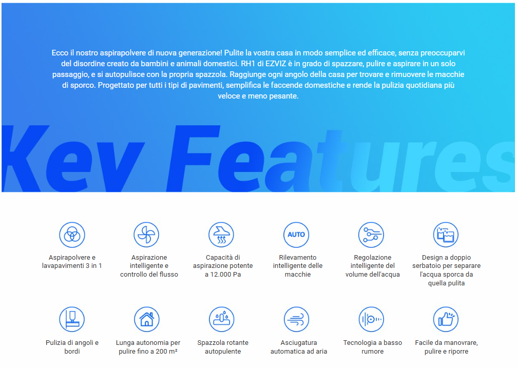 - EZVIZ RH1 Aspirapolvere e lavapavimenti 3 in 1 Senza Fili Intelligente, Lavapavimenti, Assistente Vocale, Capacità di aspirazione potente da 12000 Pa, Fino a 200 m², Ottimo per Peli di Animali