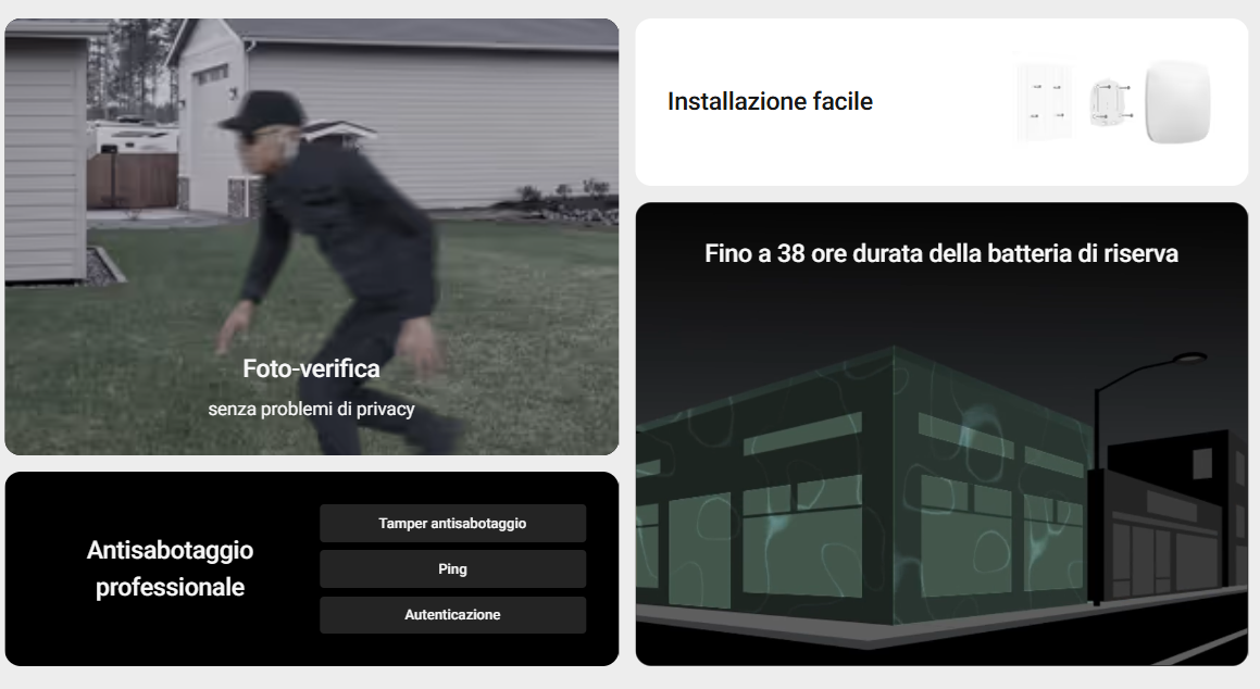 ReX 2 Jeweller supporta sia i rilevatori di movimento MotionCam che MotionCam Outdoor. Una volta attivati, catturano una serie di immagini animate che aiutano a valutare rapidamente la situazione nell’impianto. Riducendo gli interventi di pattuglia non necessari, contribuiscono a garantire la tranquillità dei clienti.
