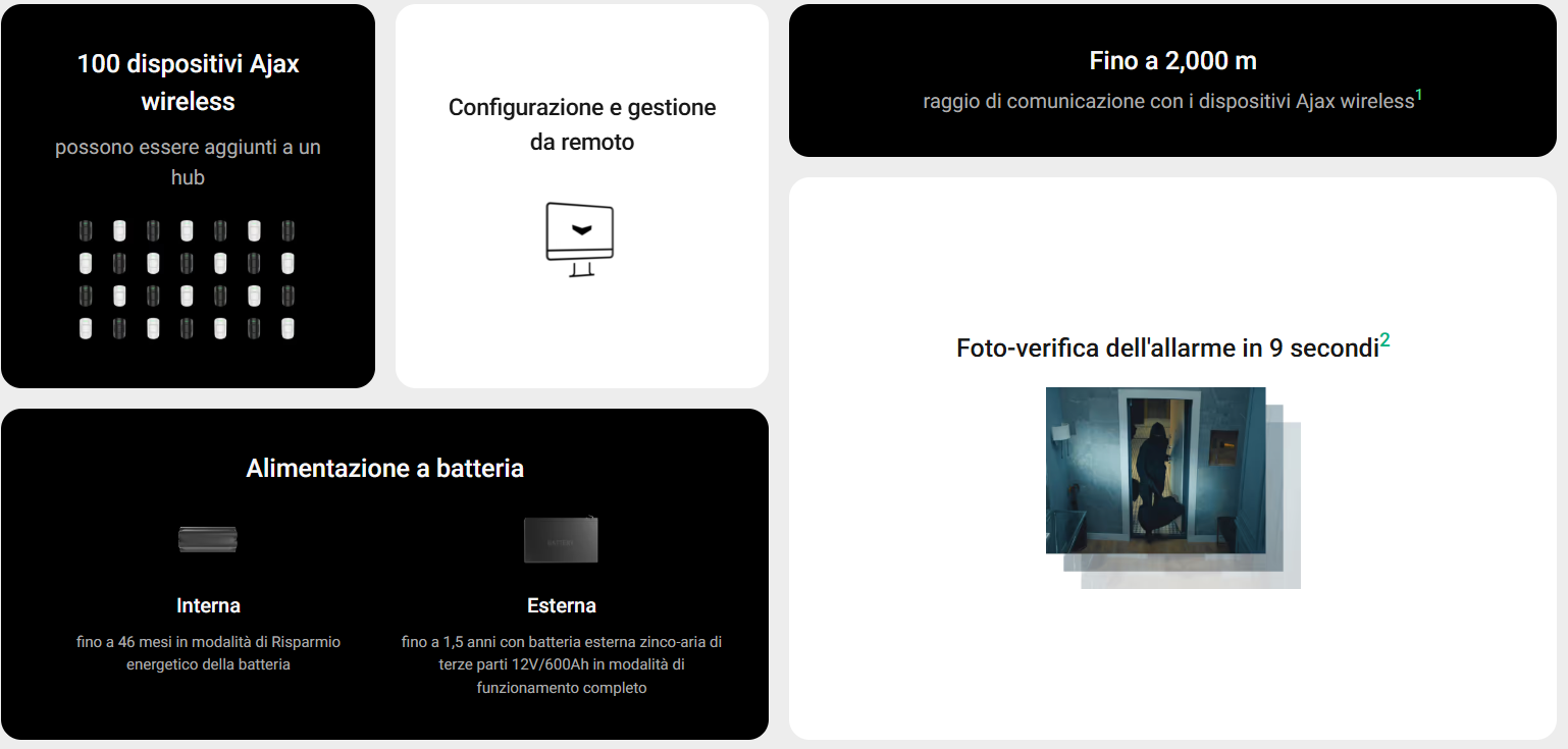 Ajax - Hub BP Jeweller - Unità centrale wireless alimentata a batteria. 149623.263.BL1 - 149624.263.WH1