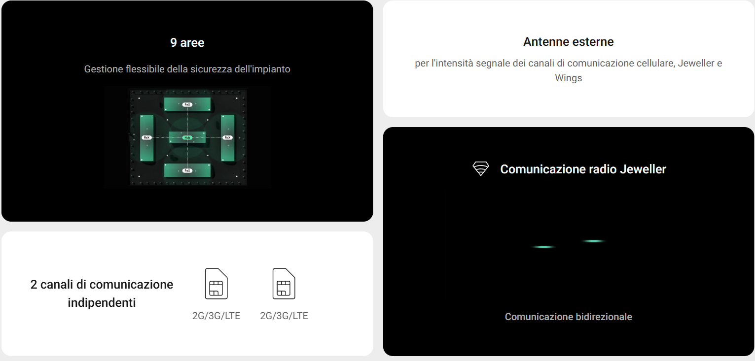 La comunicazione con il mondo esterno è fondamentale per l'unità centrale del sistema di sicurezza. La sua affidabilità e stabilità garantiscono l'invio tempestivo dell'allarme all'istituto di vigilanza e agli utenti.