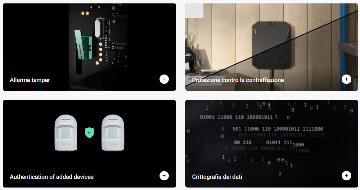 In un sistema Ajax è possibile combinare dispositivi di tutte le categorie di prodotti: Protezione contro le intrusioni, Videosorveglianza, Protezione antincendio o Comfort e automazione. Create il sistema in base alle vostre esigenze e gestitelo con un'unica interfaccia.